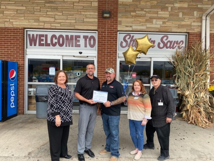 Pictured L-R: Laurie Saunders, WVDRS Employment Specialist, Daniel Simmons, WVDRS Branch Office Manager, Curtis Wolfe, Shop & Save Store Manager, Stephanie Runions, Shop & Save Assistant Store Manager, Gary Lillard, Shop & Save Grocery Manager